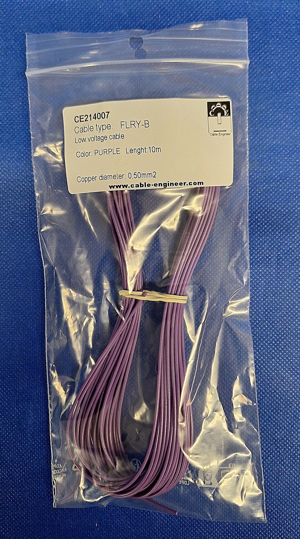 Zakje met 10m. FLRY-B kabel 0,50 mm2 in de kleur PAARS. Laag Voltage FLRY-B kabel is zeer flexibel en bestand tegen hitte, koude, oliën, chemicaliën, brandstoffen en andere bijtende materialen en daardoor uitermate geschikt voor gebruik in voertuigen.