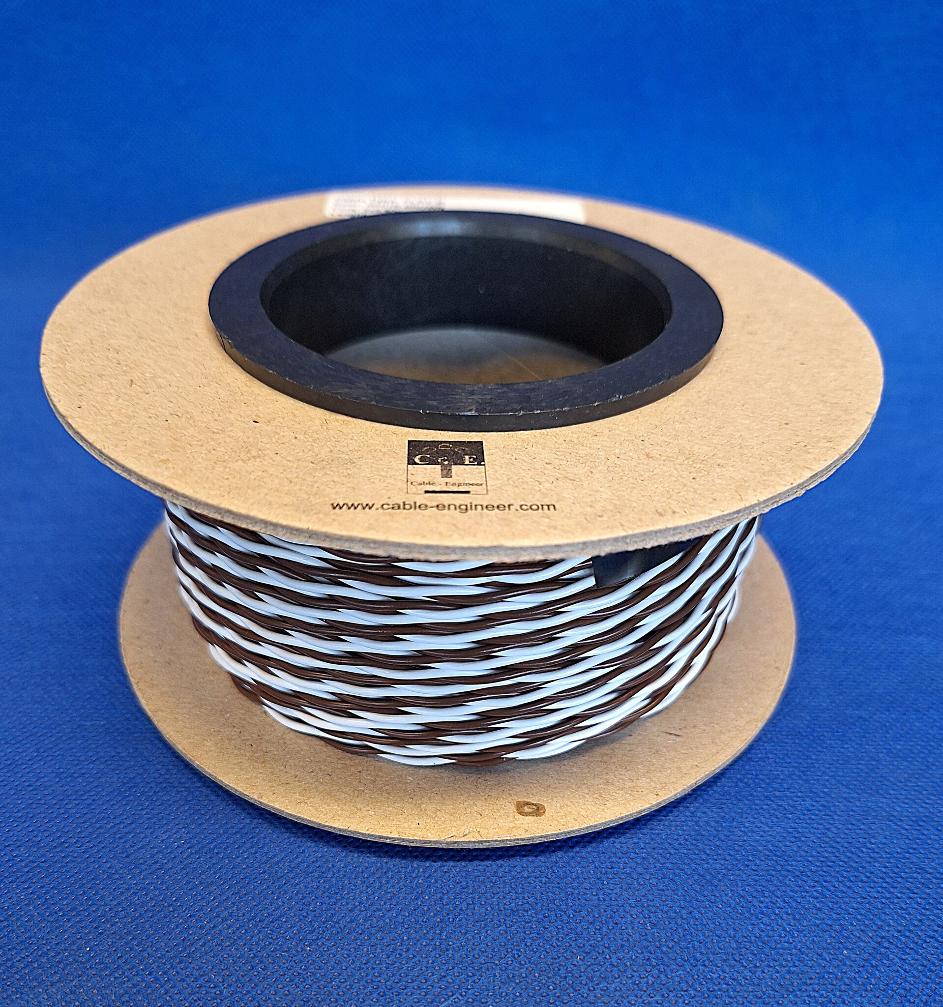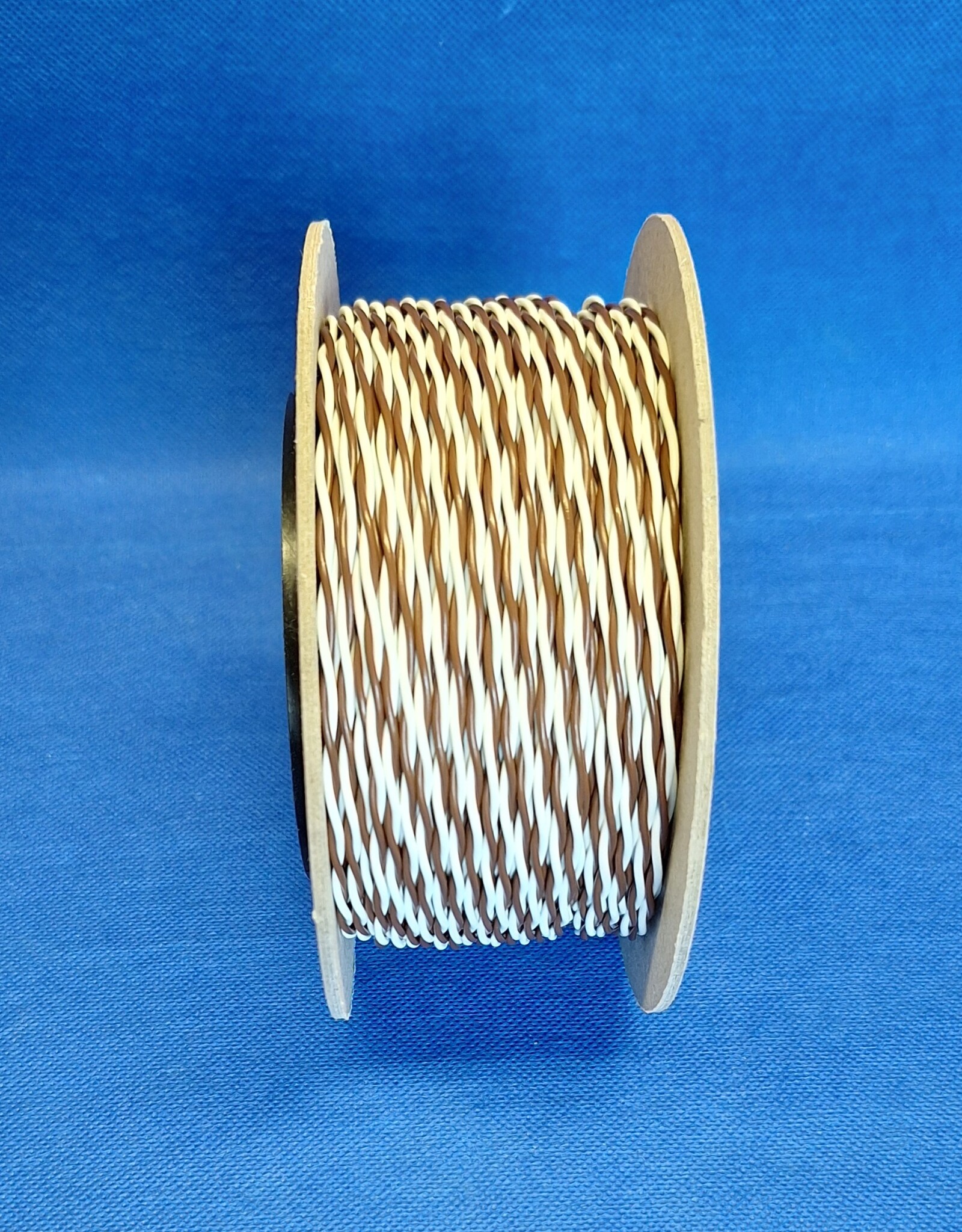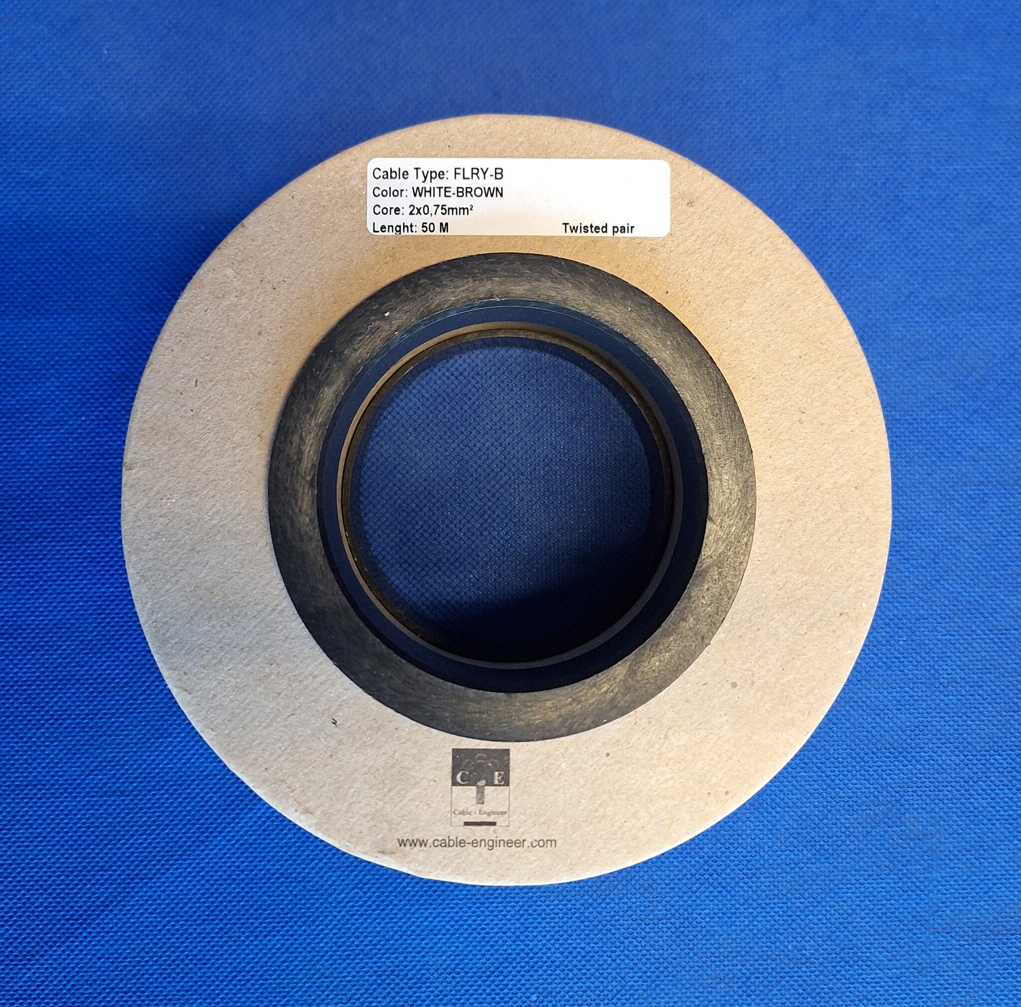 Twisted-Pair 2x 0,75 mm2 FLRY-B kabel in de kleur Bruin/Wit verpakt per 50 meter op rol. FLRY-B kabel is zeer flexibel en bestand tegen hitte, koude, oliën, chemicaliën, brandstoffen en gedraaid om elektromagnetische storingen te voorkomen - CAN-bus