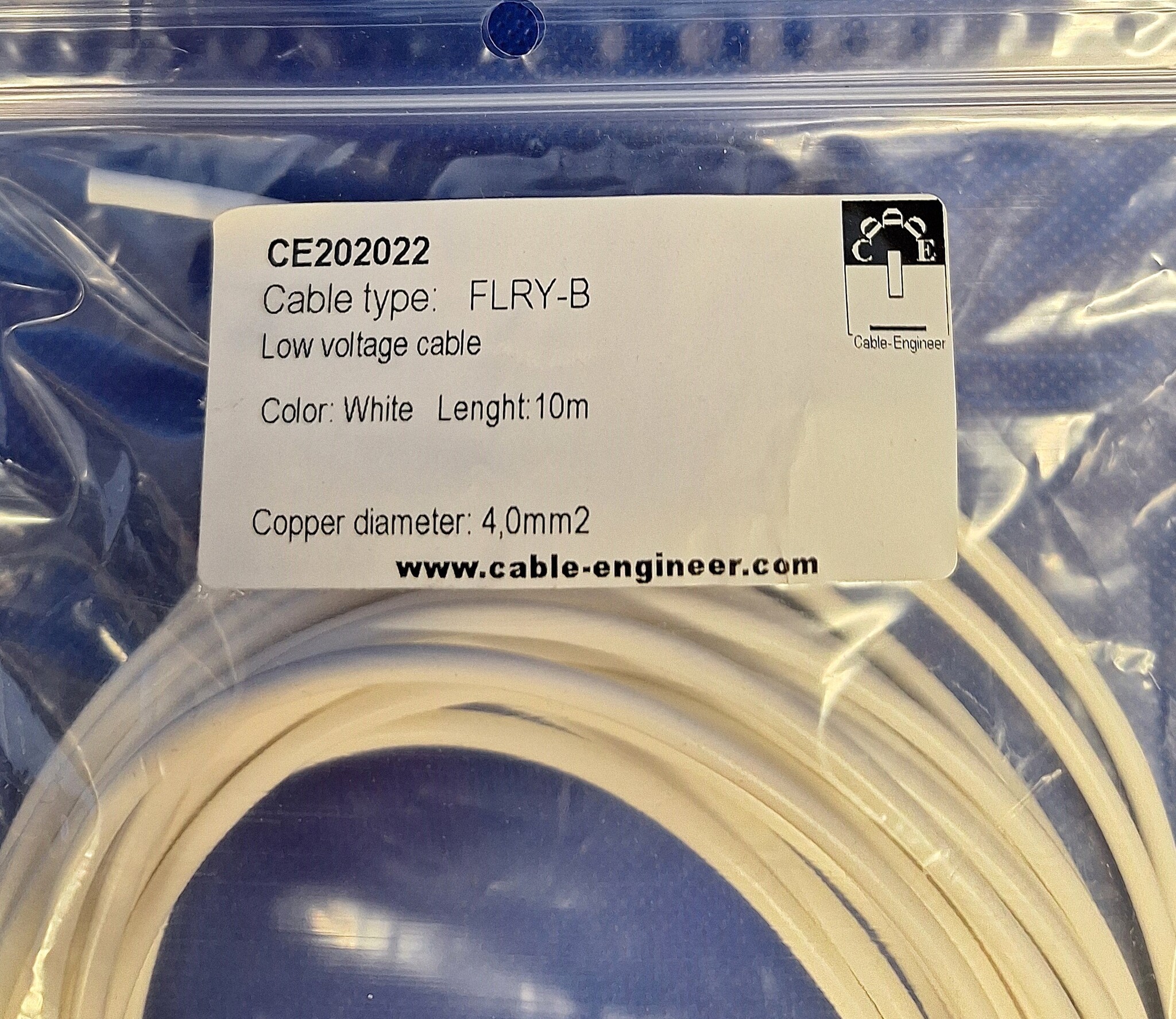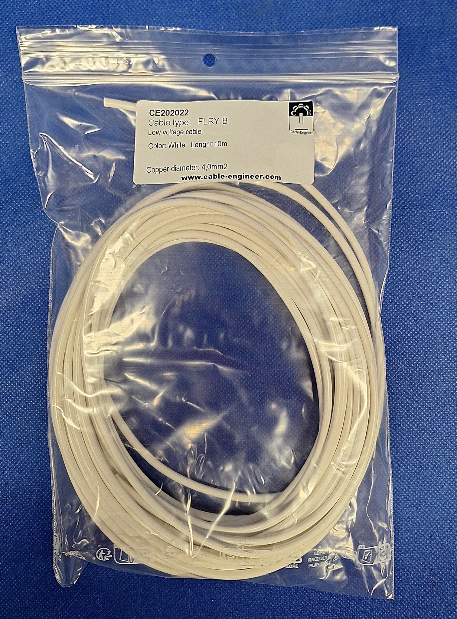 4,0mm2 FLRY-B kabel per 10 meter in de kleur WIT. FLRY-B kabel is zeer flexibel en bestand tegen hitte, koude, oliën, chemicaliën, brandstoffen en andere bijtende materialen en daardoor uitermate geschikt voor gebruik in voertuigen.