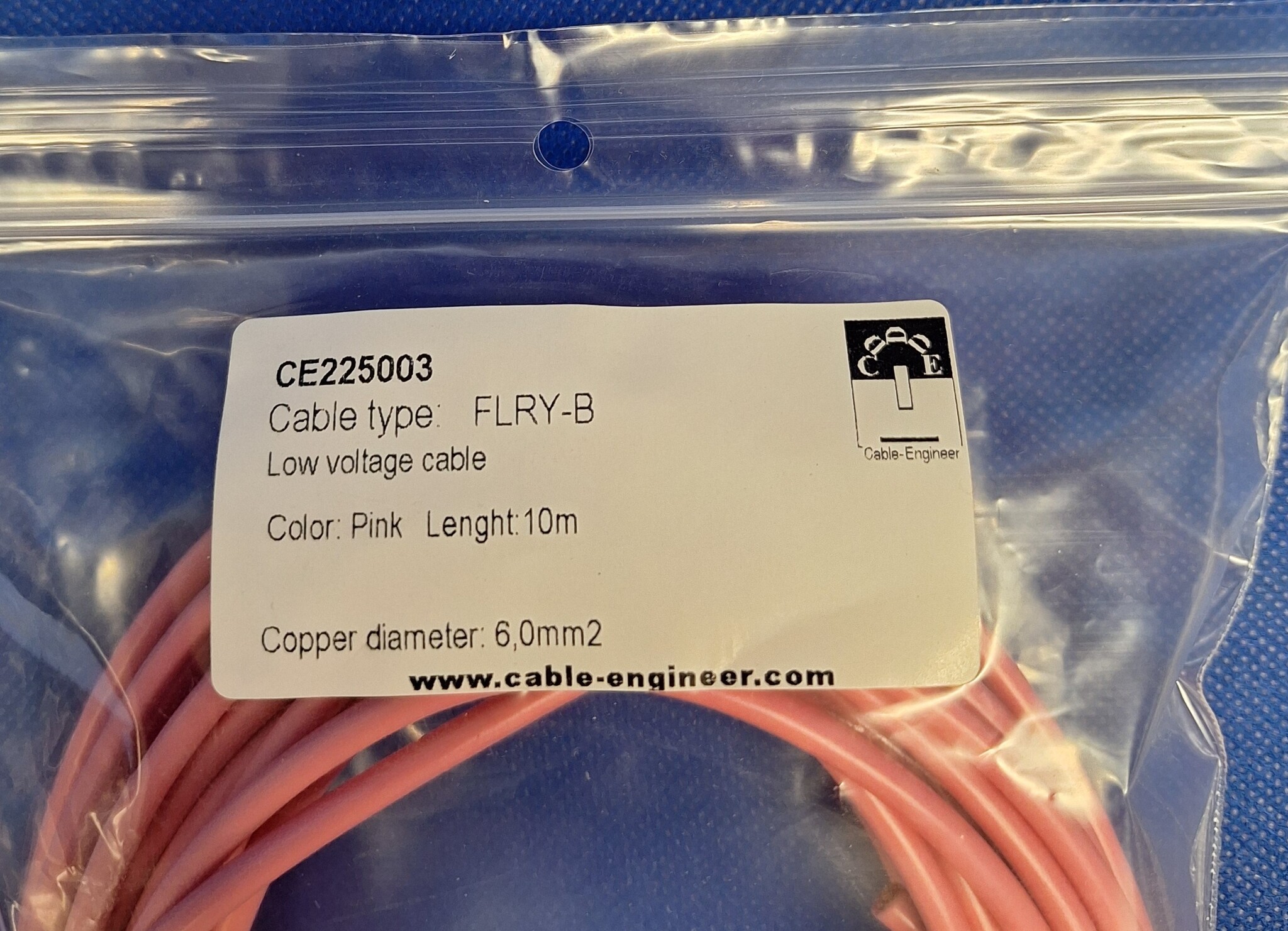 6,0mm2 FLRY-B kabel per 10 meter in de kleur ROZE. FLRY-B kabel is zeer flexibel en bestand tegen hitte, koude, oliën, chemicaliën, brandstoffen en andere bijtende materialen en daardoor uitermate geschikt voor gebruik in voertuigen. (Perkins kleur)