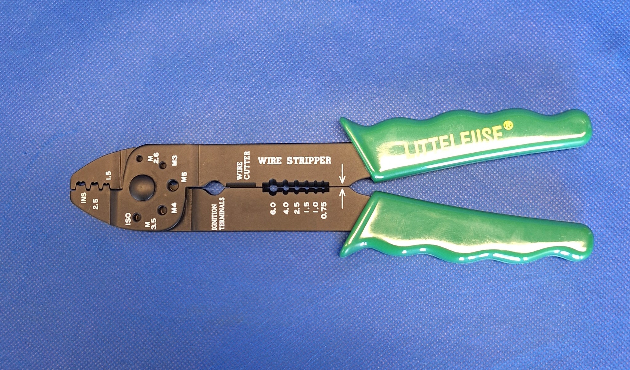 Draadstrippen van 0,5 t/m 6,0mm2 / 3 aparte uitsparingen voor krimpen van open-barrel contacten / knip-gedeelte voor knippen van draden en snoeren en 4 knip-gaten voor knippen van spijkers en bouten.