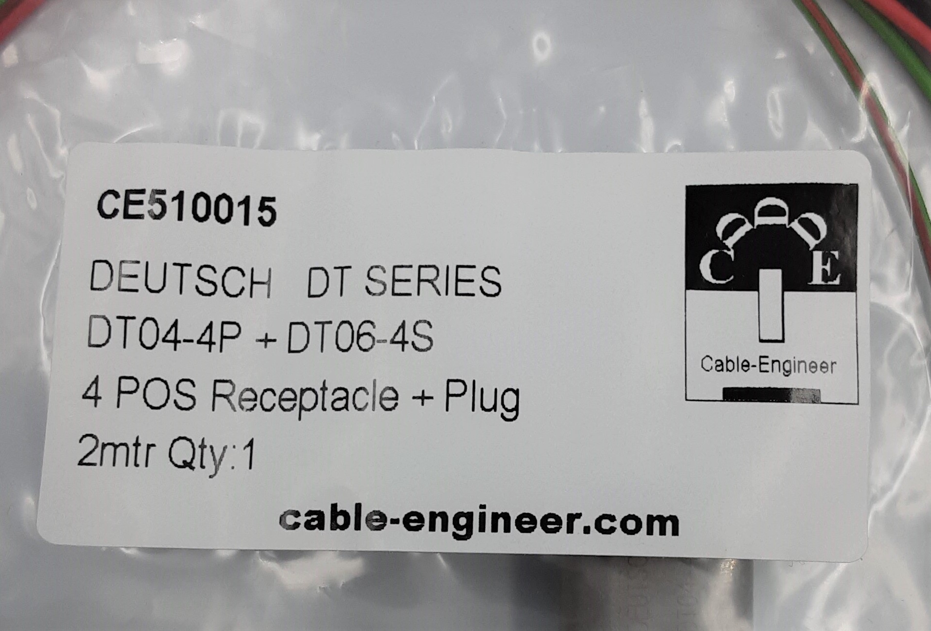 TE Deutsch DT Pigtail-set: 4-Pos. Receptacle DT04-4P & Plug DT06-4S+ 8x 2 meter 0,75mm2 FLRY-B kabel met professioneel aangekrompen Deutsch DT contacten en wedgelock-plugs voor het exact uitlijnen en vastzetten van de contacten in de behuizing.