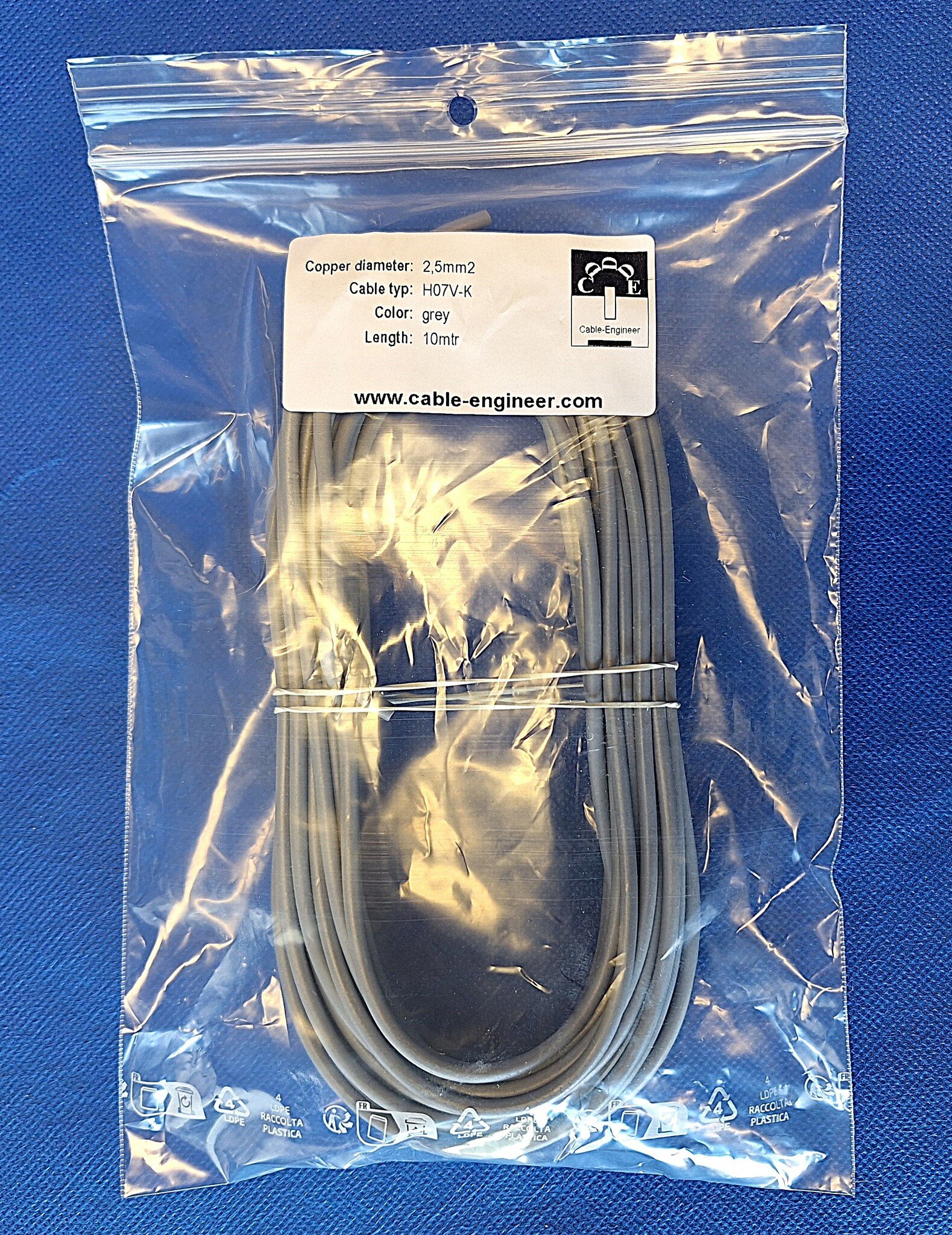 H07V-K geharmoniseerd montagedraad 1 x 2,5 mm2 450/750 V. - Grijs - 10m.