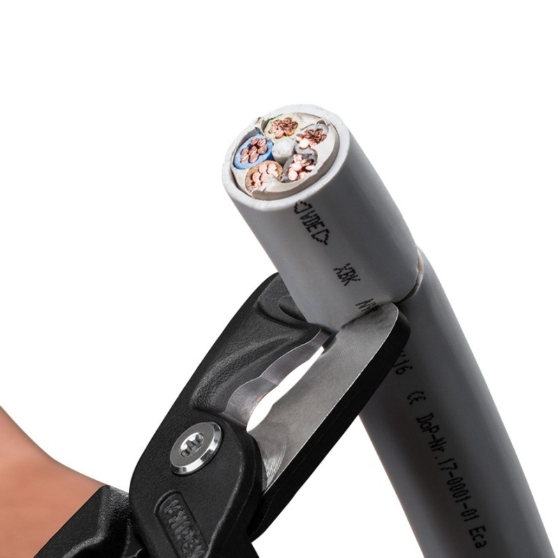 Door het slimme ontwerp met extra sterke scharnieren en lange handvatten, kan je deze kabelschaar makkelijk met één- en met 2 handen gebruiken en hierdoor knip je vele malen makkelijker dan met compacte kabelscharen.