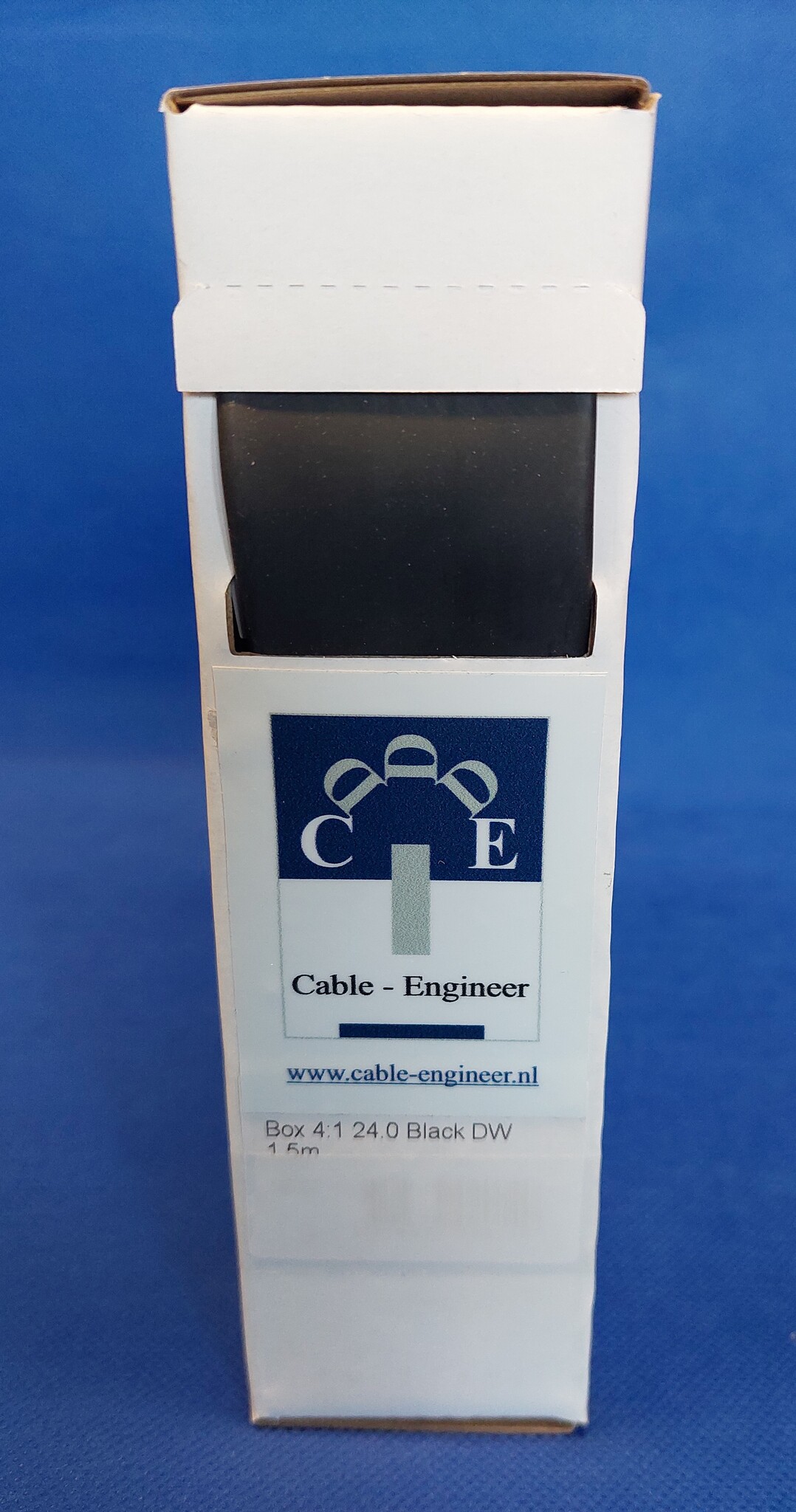 Ø 24 Krimppkous Box met 1,5 meter dubbelwandige krimpkous met lijm. Ø 20,0 / 5 mm met krimpratio : 4:1 - Zwart
