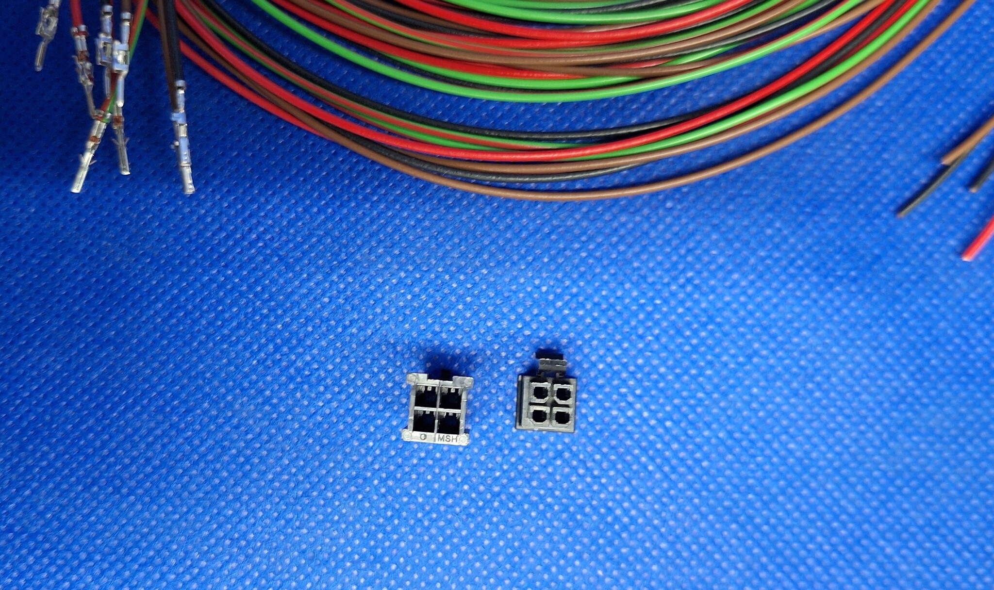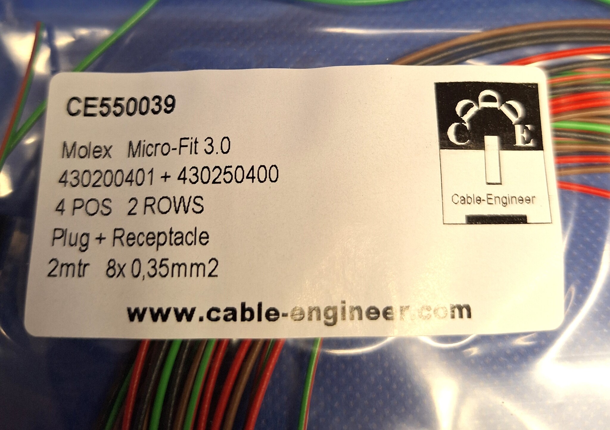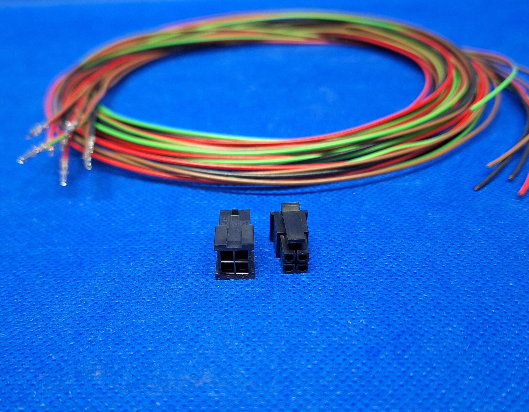 Kant en klare set, klaar voor gebruik van Molex Micro Fit 3.0 Serie. Complete set met Molex Micro Fit 3.0 Plug & Receptacle Housing - 4-Posities - 2-rij compleet met 8x 2 meter FLRY-A kabel van 0,35mm2 en pre-crimped contacten aan de kabel