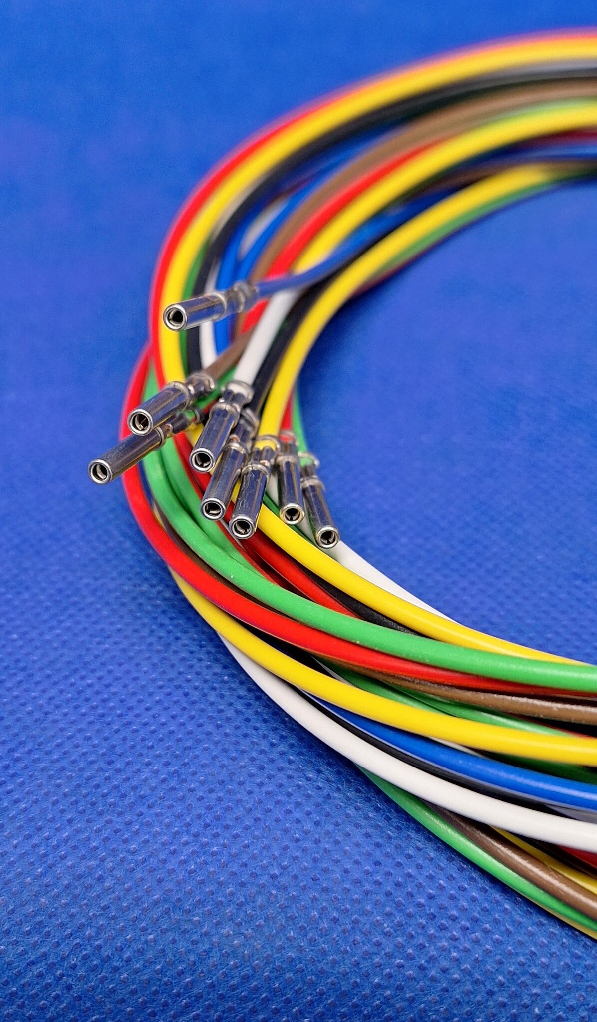Complete Plug set met één Deutsch DT 8-Pos. Plug (man) DT06-08SA + 8x 2 meter 1,5mm2 FLRY-B kabel in de kleuren rood, zwart, blauw, bruin, geel, en rood/groen met professioneel aangekrompen vrouwelijke contacten(nikkel) en bijbehorende wedgelock voor het vastzetten en exact uitlijnen van de contacten in de behuizing.
