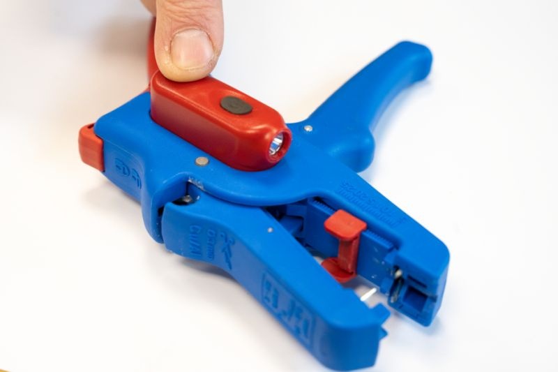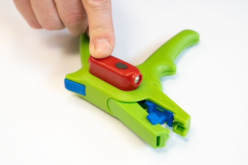 Slimme engineers bij WEICON; extra toevoeging aan alle striptang van WEICON Series No. 5 en No.7. LED lamp kan eenvoudig en snel worden gemonteerd op de bestaande striptangen. Naamplaatje van je tang verwijderen en je kan je nieuwe LED lamp met één beweging vastklikken in je tang.