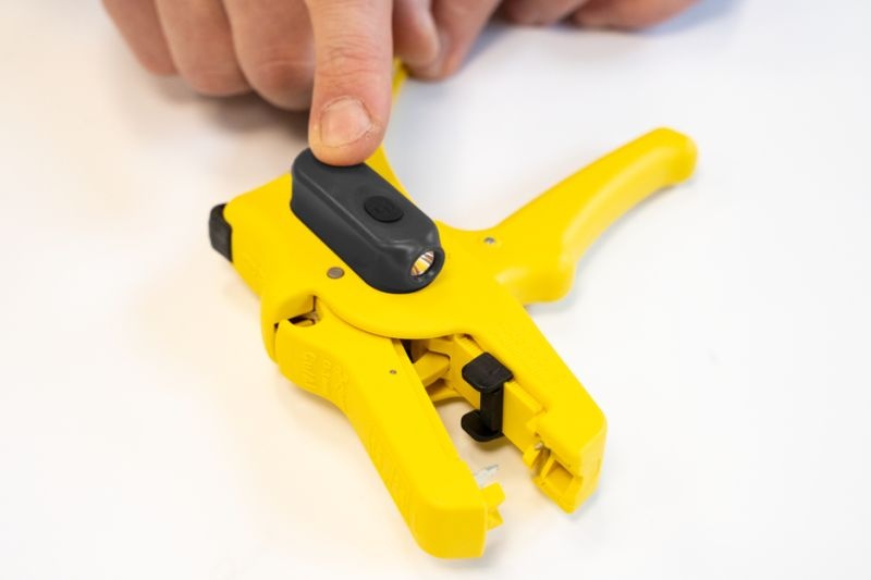 Slimme engineers bij WEICON; extra toevoeging aan alle striptang van WEICON Series No. 5 en No.7. LED lamp kan eenvoudig en snel worden gemonteerd op de bestaande striptangen. Naamplaatje van je tang verwijderen en je kan je nieuwe LED lamp met één beweging vastklikken in je tang.