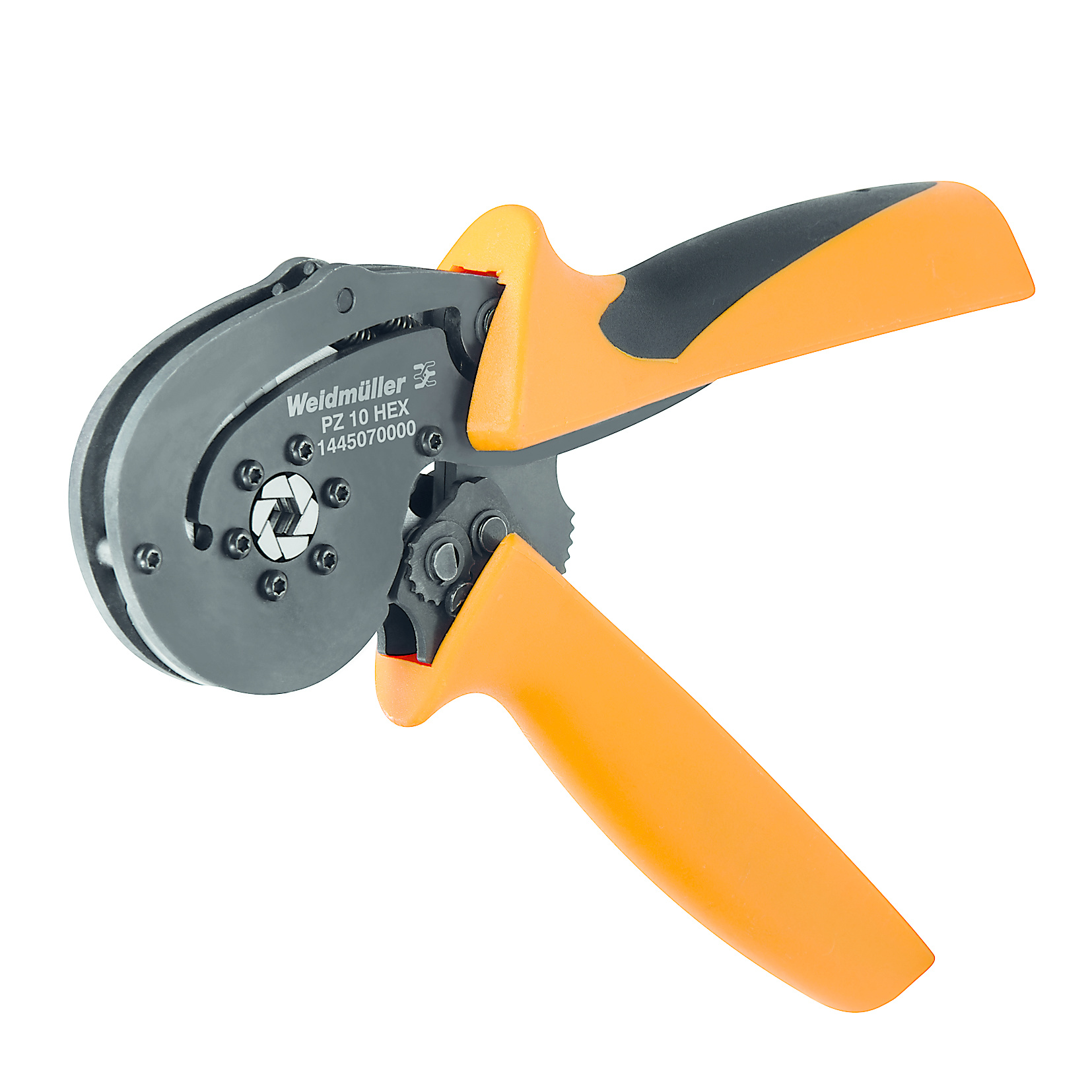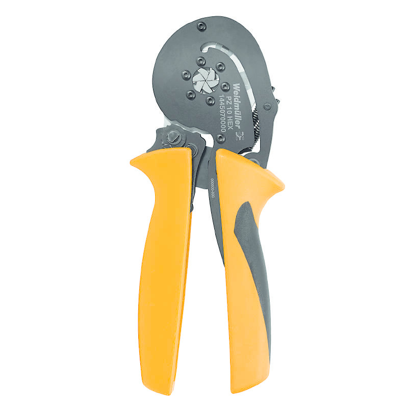 Deze Weidmüller Krimptang in de uitvoering PZ10 HEX is speciaal ontwikkeld voor het 6-kantig (hexagonaal) aan-krimpen van adereindhulzen of cord-end terminals voor alle maten van 0,14-10mm2. voor zowel geïsoleerde als niet- geïsoleerde adereindhulzen.